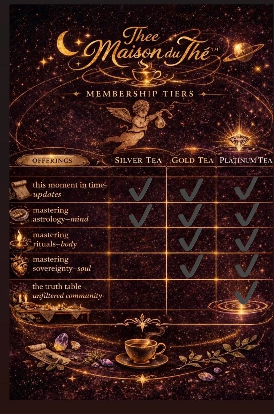 Thee Maison Du Thé is the container that holds my Mysticism! This membership is where everything I’ve learned, and continue to learn, Lives.